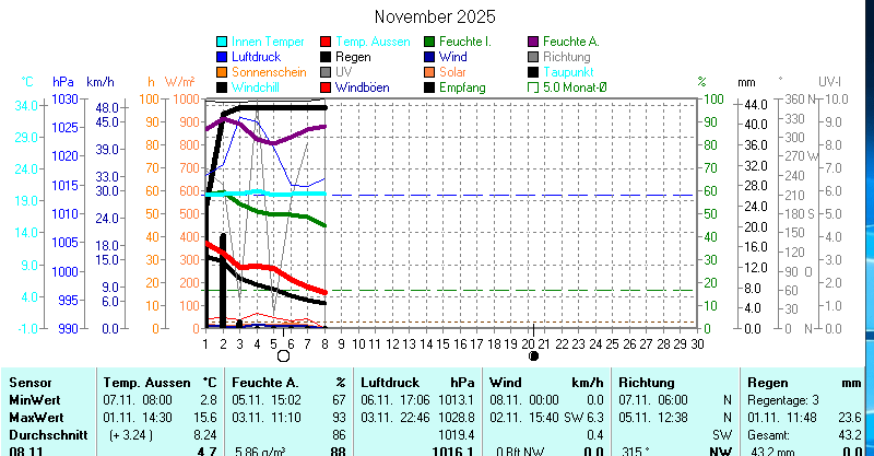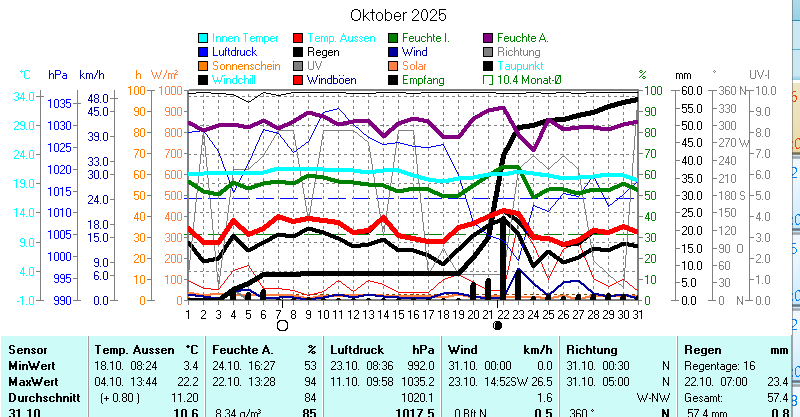 | Wetterübersicht - Wetterstation "Keltenweg 36" in 4125 Riehen aufzei 265 m über NN | ||||||||||||||||||||||||||||||||||