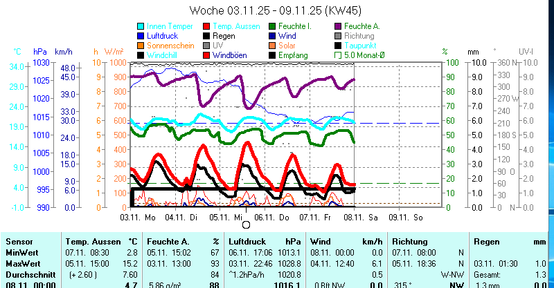 AUSSEN TEMPERATUR ÄNDERUNG LETZTE STD +1.1 °C |