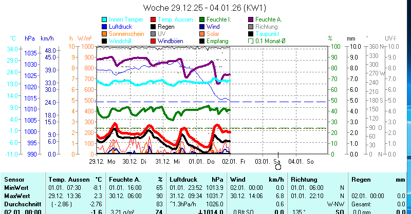 | Die dargestellten Werte repräsentieren die Daten der letzten 24 Stunden! Der Luftdruck ist auf Meereshöhe bezogen! | ||||||||||||||||||||||||||||||||||